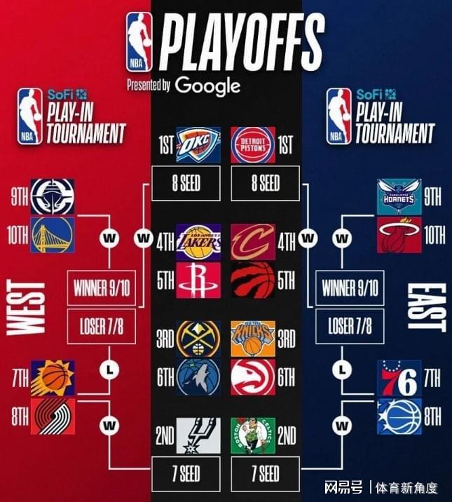 常规赛的硝烟刚散,附加赛的战火就“噌”地燃起来了!瞧瞧这附加赛的对阵,西部那边,快船(9)跟勇士(10)掐得不可开交,太阳(7)和开拓者(8)也是摩拳擦掌;东部呢,黄蜂(9)和热火(10)要一决高下,费城(7)和魔术(8)也是剑拔弩张。附加赛规则嘛,简单来说,第七和第八先干一架,赢了的直接...