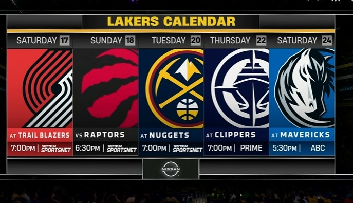 未来五场,湖人的对手依次是:开拓者、猛龙、掘金、快船和独行侠。